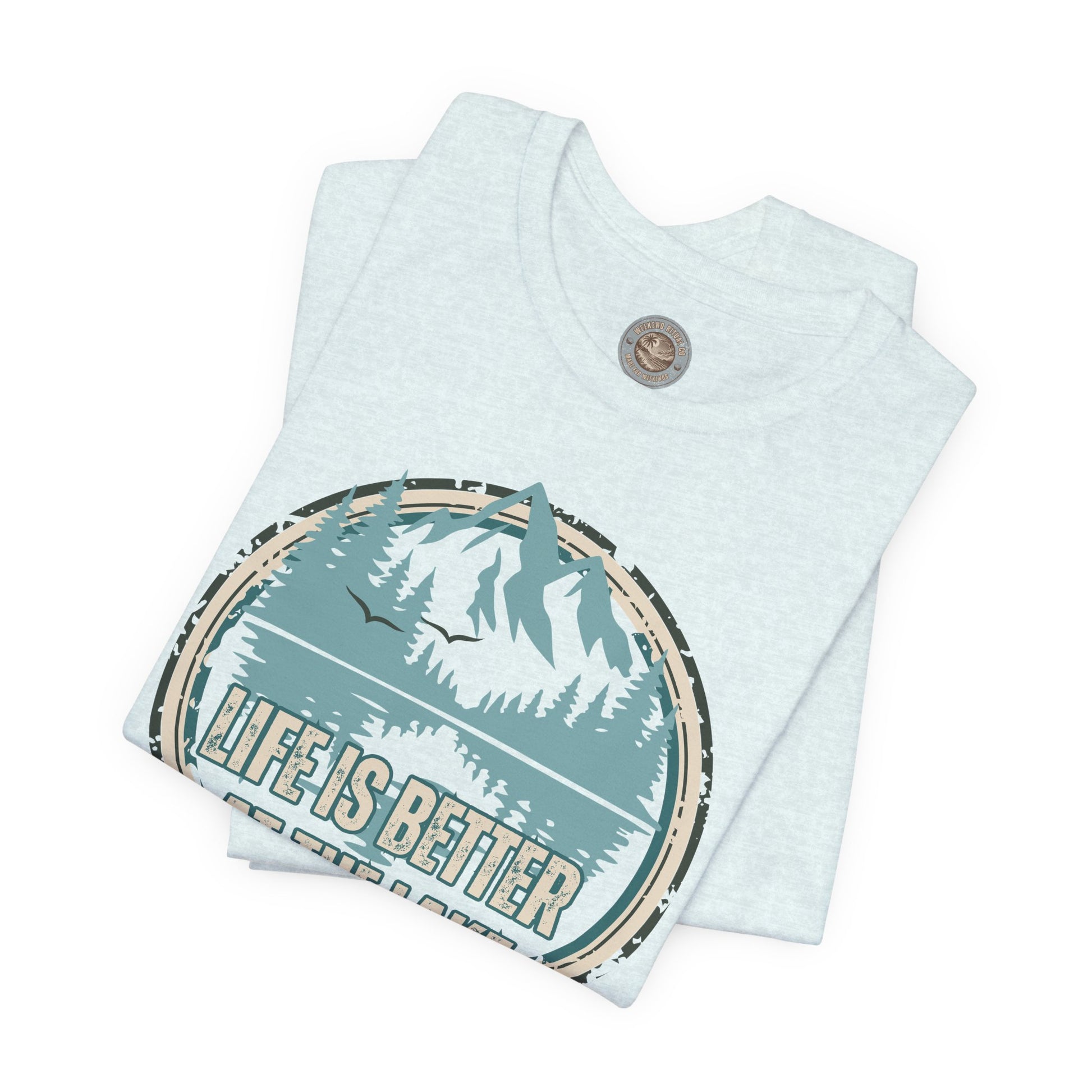 Late-afternoon light catches the faded ink of a retro tee: Life is Better at the Lake. This lightweight tee slips on easily after a spontaneous paddle or a slow dock-side evening. The vintage graphic feels lived-in from the first wear, pairing with worn denim, flannel, or your favorite camp chair. It breathes on warm days, layers under an overshirt when the lake breeze arrives, and wears in with the same quiet comfort as familiar campsite rituals. For people who track sunsets, pack a cooler, and measure time by the ripple of water, this shirt reads like a memory you can put on—soft, simple, and quietly nostalgic for lake nights and slow mornings.