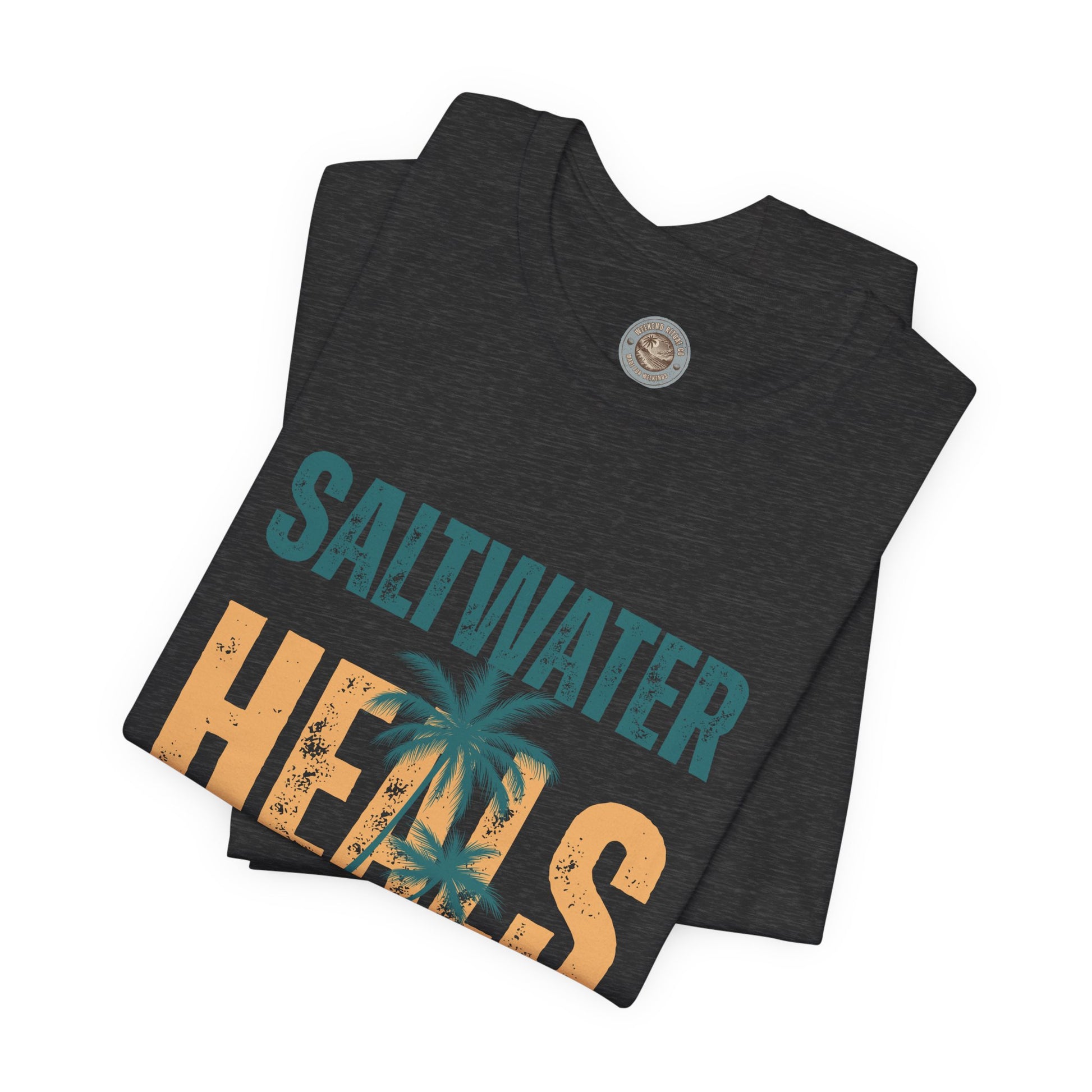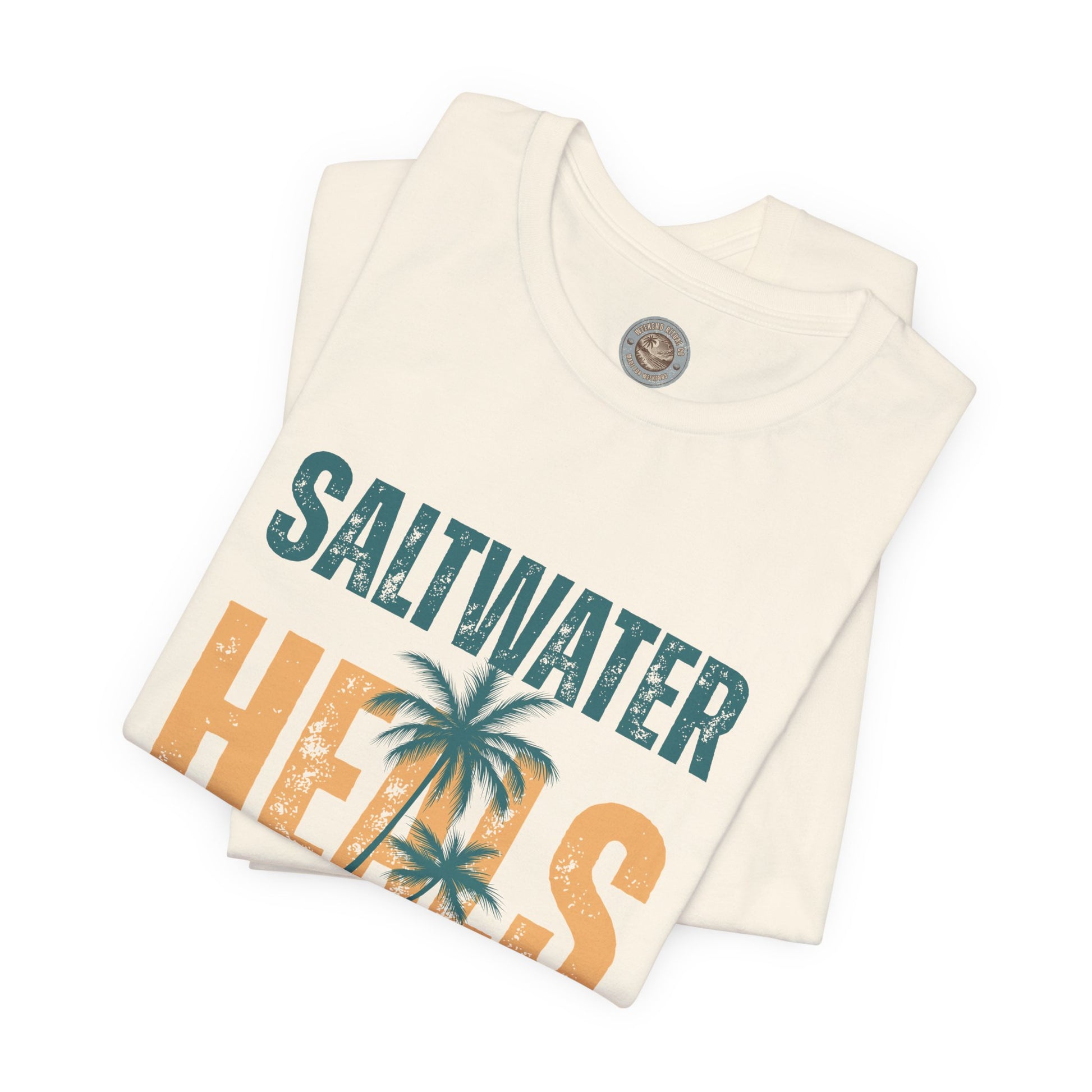 This vintage-inspired "Saltwater Heals Everything" coastal tee brings sun-faded charm and easygoing seaside energy to your everyday rotation. The distressed text-block design reads like a weathered surf sign spotted after a long walk on the boardwalk — worn edges, muted tones, and a retro layout that feels lived-in from the first wear. Lightweight Airlume combed cotton keeps the shirt breathable for warm afternoons and layered cooler evenings. With thoughtful construction — side seams, shoulder tape, and a ribbed knit collar — it holds its shape while staying soft and comfortable. Wear it to stroll the pier, sip coffee at a beachfront café, or pack it for a weekend escape; the look pairs naturally with denim shorts, an old hoodie, or a canvas tote. The understated coastal vibe lands more like a memory than a statement: the kind of tee that feels like yours the moment you put it on.